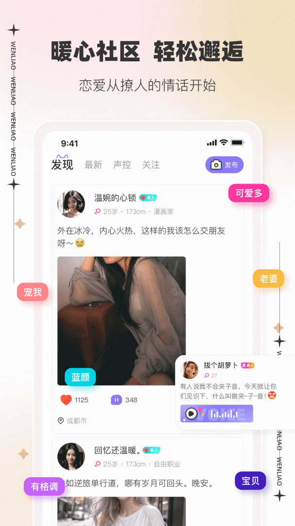 文撩是一款独特且实用的社交应用,通过文字互动连接人心。其丰富的社交功能和个性化定制,让交友体验更加深入和个性化。文撩注重真实和真诚的交友环境,保障用户能在安全、健康的氛围中建立深厚的情感联系。