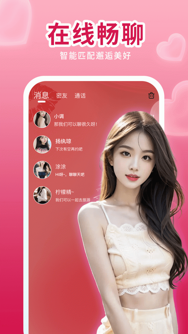 唇聊视频交友是一款主打即时语音通话和视频聊天的社交应用。它以其创新的交友方式和独特的功能,为现代都市人提供了一个全新的社交体验。用户可以随时随地与全球范围内的陌生人进行语音通话或视频聊天。通过先进的音频技术,用户可以清晰地听到对方的声音,并看到对方的实时影像。这种身临其境的交流方式,让用户能够更加深入地了解对方的生活、兴趣爱好和个性特点。唇聊视频交友还注重用户的隐私保护。用户可以自由设置个人资料的可见范围,保护自己的隐私安全。平台也采取了严格的审核机制,确保每一位用户的身份信息真实可靠。