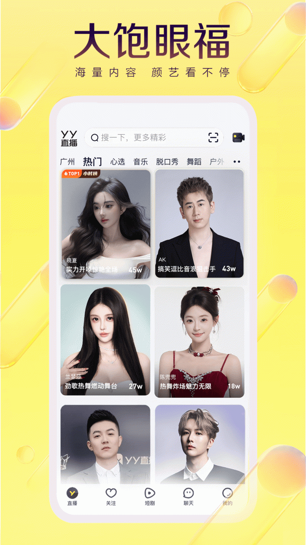 YY直播成功地融合了直播、短视频和深度交友的功能,创建了一个全方位的社交生态圈。它不仅提供即时性的直播体验,让用户能够实时观看并与主播和其他观众互动,还通过短视频增加了平台的趣味性和娱乐性。这种多元化的互动形式极大地丰富了用户的社交体验,使得每一次点赞、评论或连麦都能成为情感交流的真实表达,增强了用户之间的联系感。