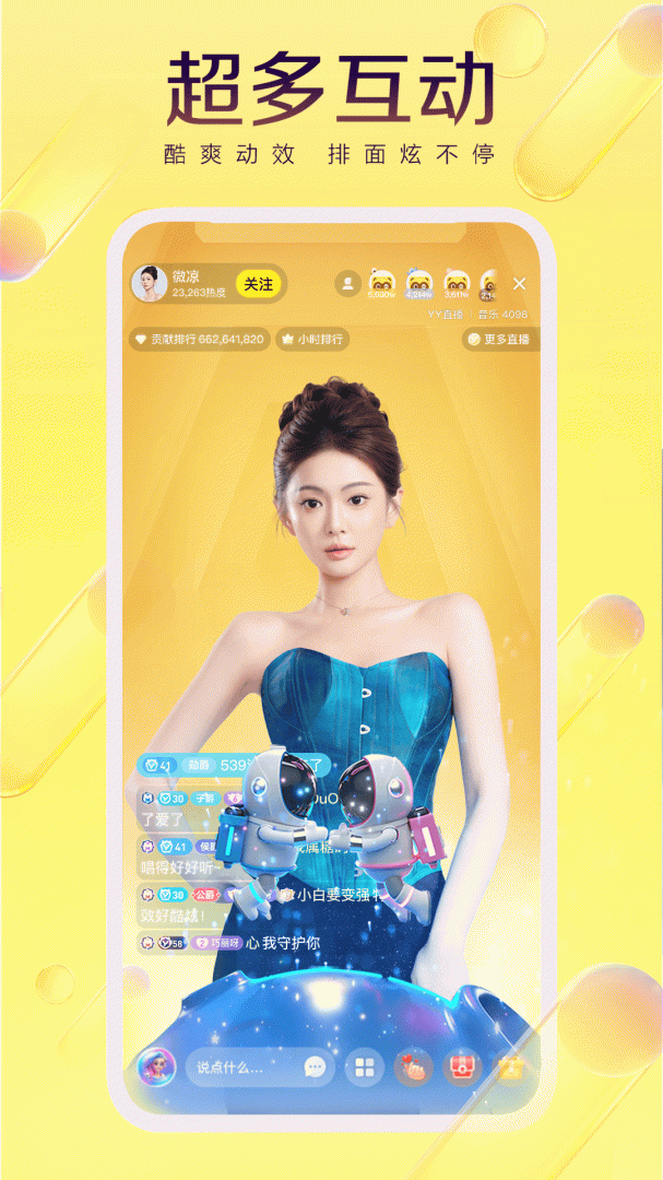 拥有超过亿万真实用户的庞大社区是YY直播的一大亮点。如此规模的用户群体意味着不管何时何地,用户都不会感到孤单,因为总能找到志同道合的人进行交流。这个平台上汇聚了千万个不同的声音和无数颗愿意靠近的心,形成了一个充满活力和共鸣的社交环境,为用户提供一个可以尽情分享自我、发现新朋友的理想场所。