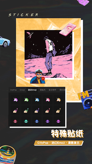 你可以轻松的制作出符合你预期图片处理效果的图片。平台内有海量滤镜、贴纸素材每日更新,让你制作出最具个人特色照片,让你的照片成为你朋友圈中最靓丽的一道风景