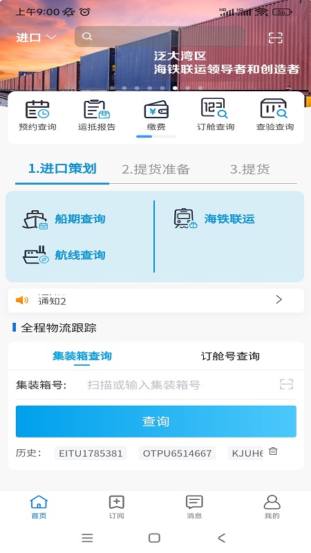 易物流盐田是盐田港集团官方推出,软件拥有业务办理,业务查询,今日看板,订阅,消息等等功能服务
