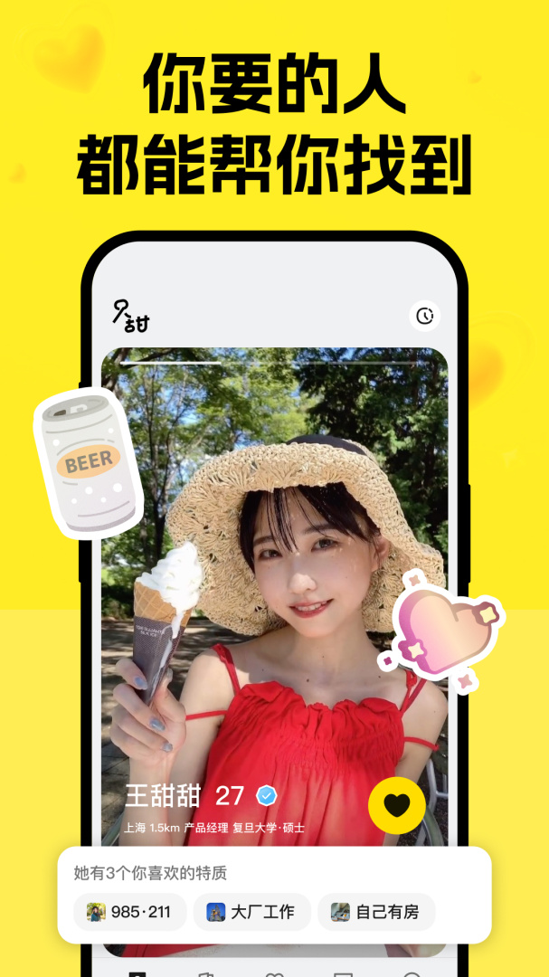 1、利用大数据分析和AI技术,只甜App能够准确分析用户的个人信息、兴趣爱好和择偶要求,智能推荐最合适的交友对象,从而提高交友的成功率和效率。
