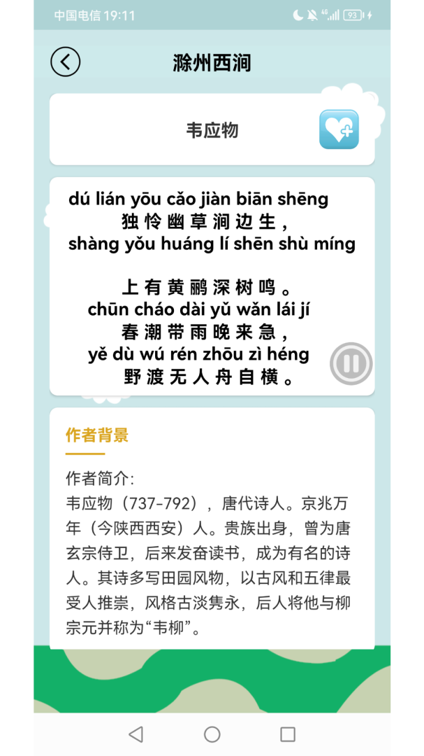 软件中的界面设计十分的美观好看,并且充满了童趣色彩便于小朋友学习诗词。