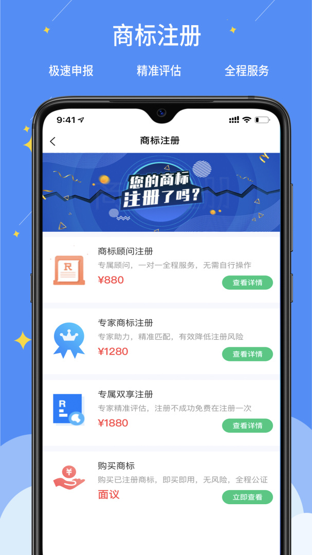 在这里汇集了商标注册、购买商标、商标注册分析和商标注册查询等服务,能够从多方面帮助各企业用户,选择不同的商标进行注册使用,随时极速申报、精准评估,还有专人全程为您服务,使用方法简单,即可使用哦