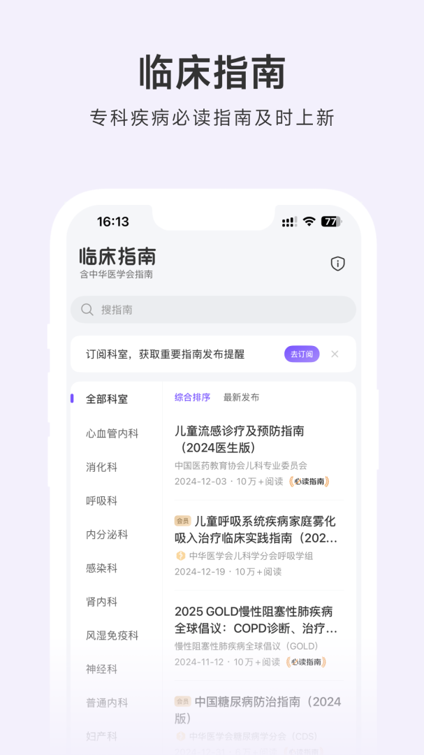 临床指南:收录了20000多份国内外专业机构发布的指南和共识。