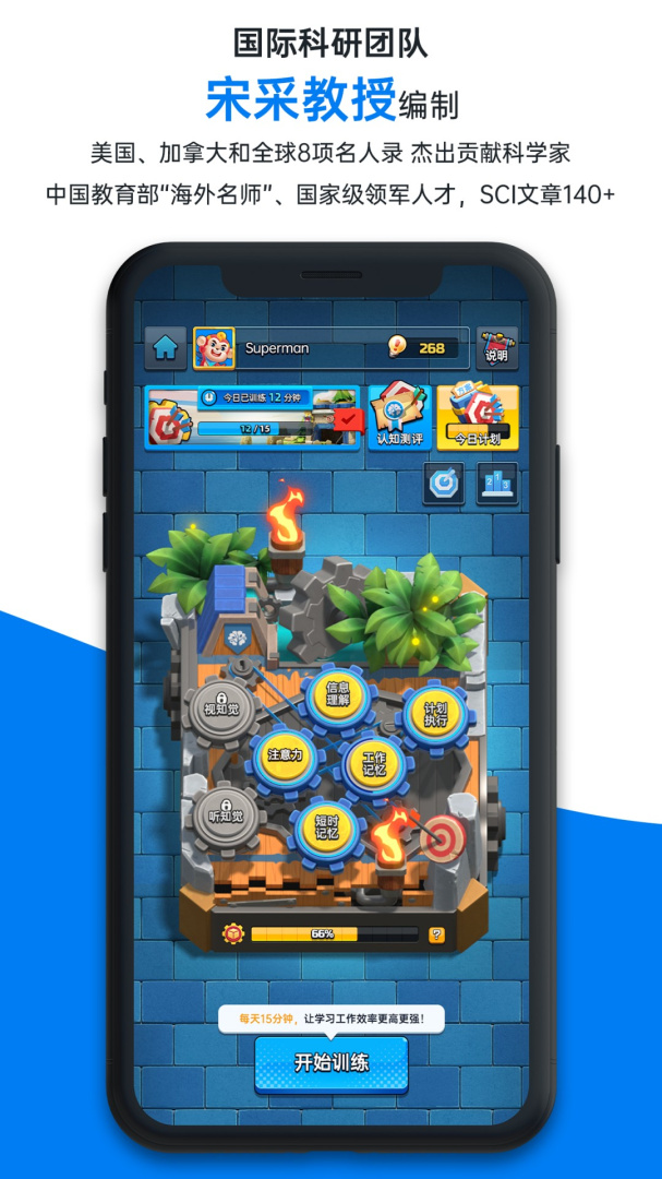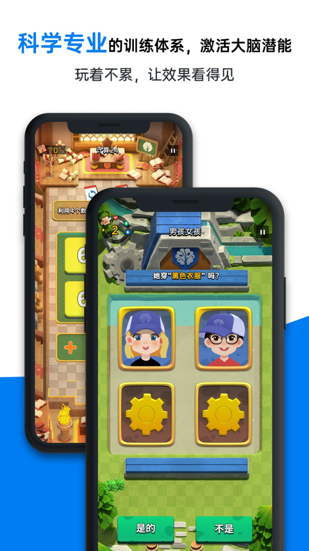 3、每个游戏仅需3-5分钟 ,同时成长脑的专利算法保证您能始终在合适的任务难度下进行游戏
