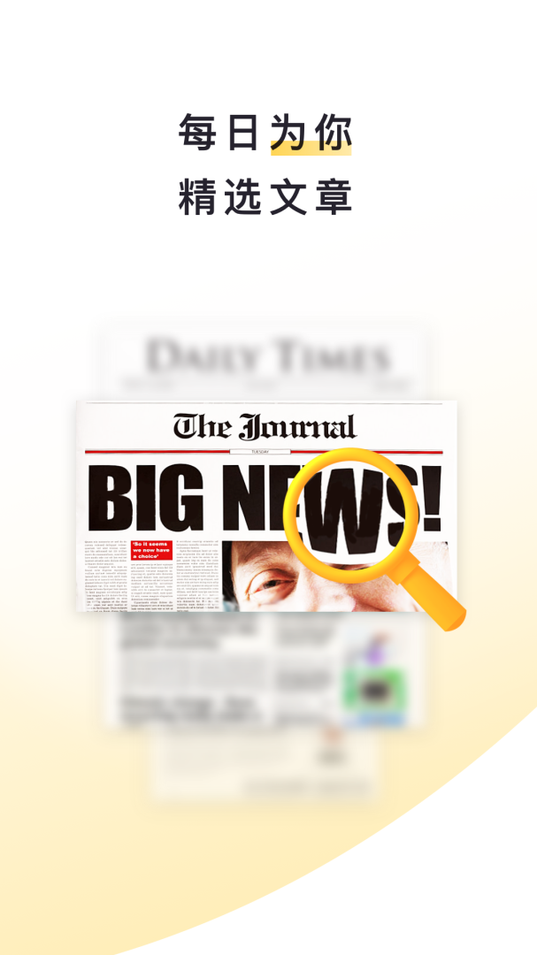 专业内容团队每日精选一篇外刊,根据用户英文能力定制推送,筛选有价值观点、情怀事件与趣味资讯,满足个性化学习需求。