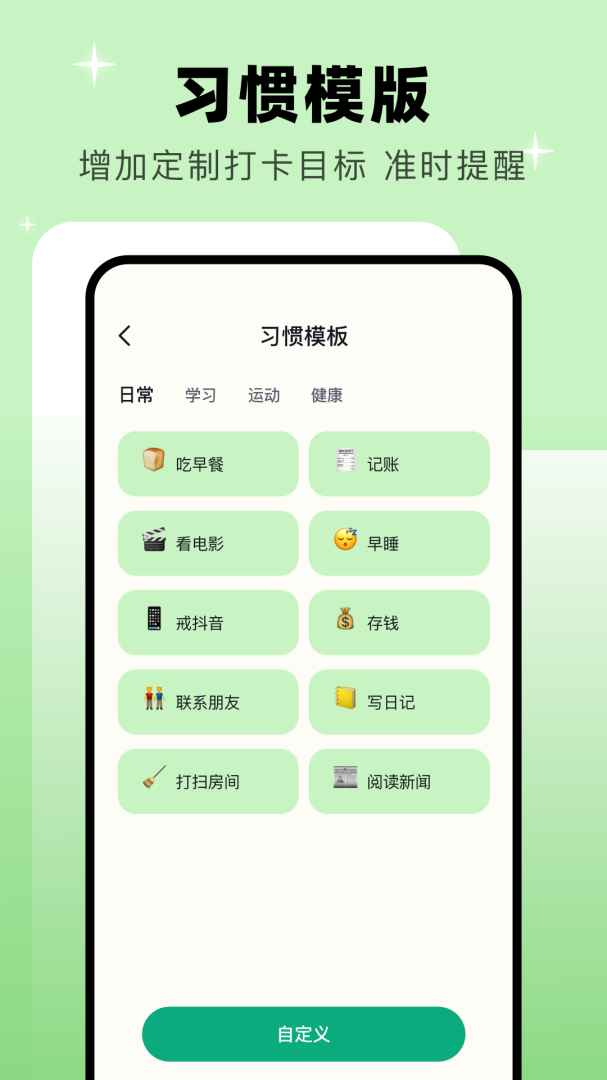 1、可根据自律模版,创建自己的自律任务,并按照清单执行,让自己每天更充实