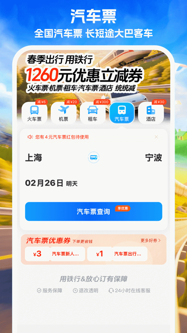 铁行火车票APP提供专业的酒店预订、机票、火车票、汽车票等全方位的旅行产品预订服务。