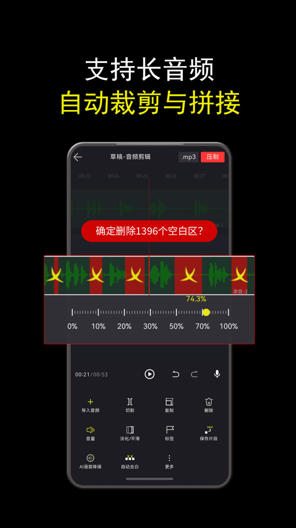 支持导入外部音频文件,用户可以自由选择和使用各种音频素材,扩展了音频处理的可能性和灵活性。
