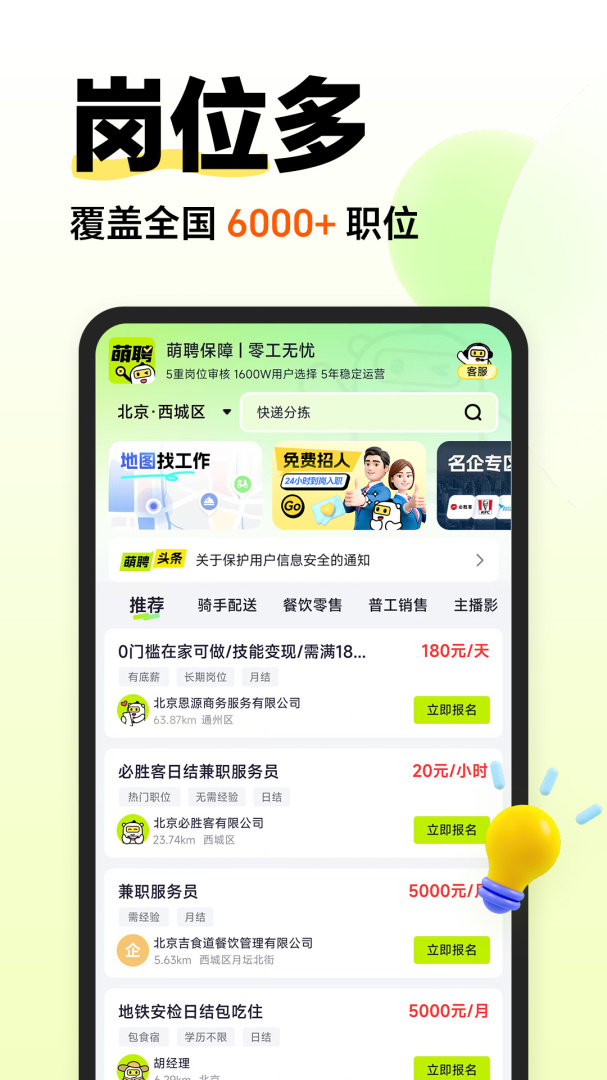 萌聘对所有岗位信息进行5重审核,确保岗位的真实性和优质性,为用户提供有效且可靠的兼职选择,减少虚假信息带来的困扰。