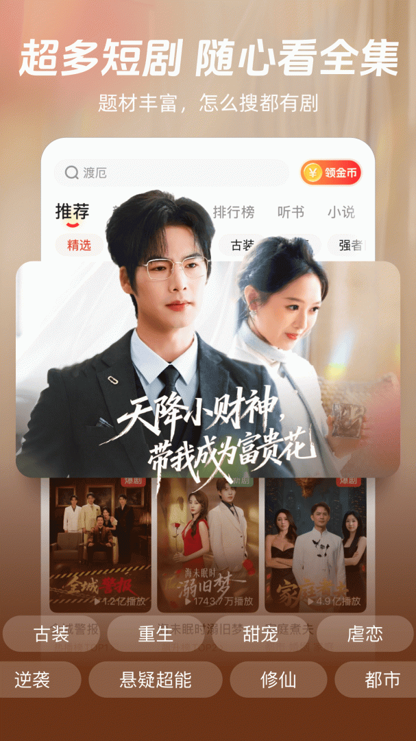 快速搜索功能,只需要输入相应的关键字,就能找到和自己感兴趣相关的短剧
