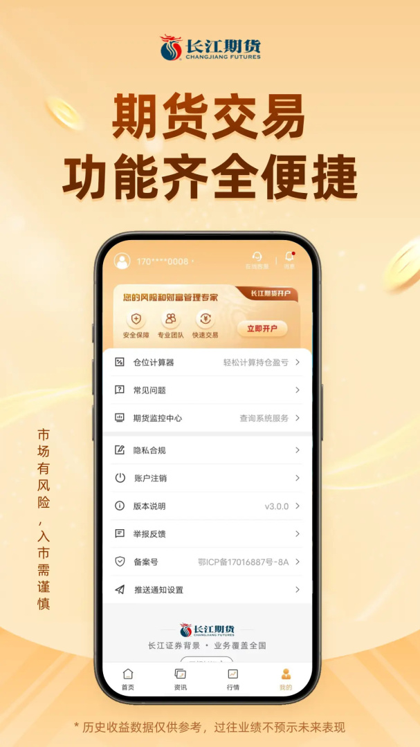 即期货的行情,交易,开户,投教和资讯于一体,给用户提供全方位的服务,满足了不同用户对期货市场的需求,方便用户随时随地完成期货的交易,掌握期货市场的行情。