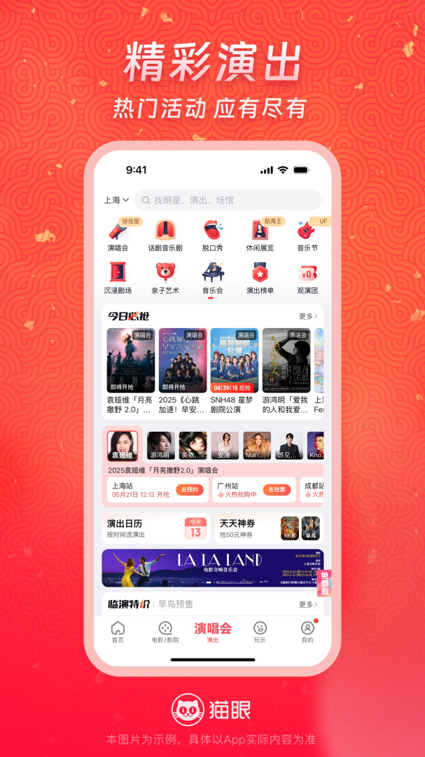 4、多元的娱乐内容:除了电影购票外,软件还提供演唱会、话剧、展览等各类演出的票务服务,满足用户的多元化娱乐需求