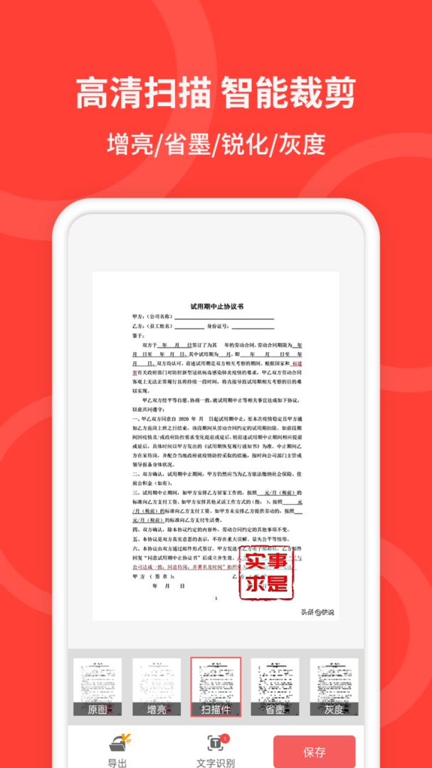 《手机扫描仪》是一款专业的扫描办公工具,能够自动识别提取手机里的照片和图片上的文字,并且能够进行指定区域进行识别,对图片进行任意裁剪,快速准确,简单实用。它不仅可以对文档、表格、书籍、名片、证件等进行识别,还能轻松搞定日常工作和生活中遇到的扫描识别问题,真正解放您的双手!无论是在办公室还是在家里,手机扫描仪都能为您提供高效、便捷的扫描服务,让您的工作和生活更加轻松。