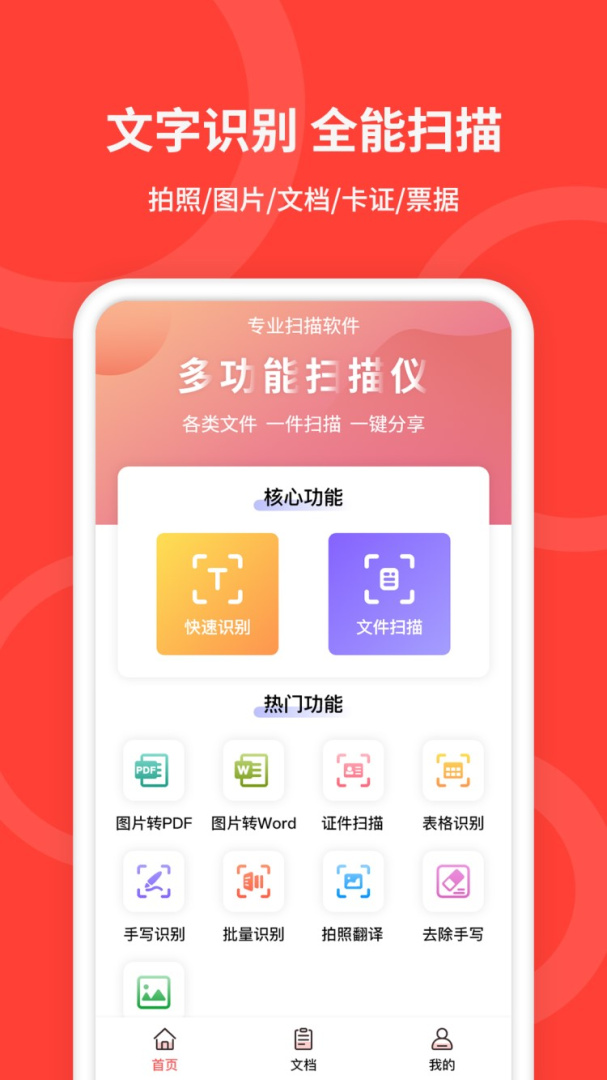 手机扫描仪又叫手机扫描仪OCR,是九江亚米信息科技有限公司开发的一款专业的手机扫描软件。软件可以直接将图片、表格中的文字提前出来,供用户使用。软件可以快速的对图片进行扫描,不需要再用手动输入,就能满足用户的需求非常方便。软件还有二维码生成、晚间转换等供能,可以有效提高用户的学习办公效率