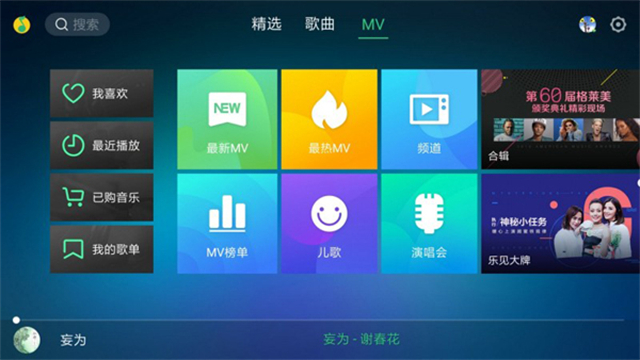 《QQ音乐TV版》是一款专为电视大屏设计的音乐流媒体应用,拥有庞大的歌曲库和高品质的音乐播放体验。用户可以轻松浏览和收听各种风格的音乐,从流行、摇滚到古典、爵士,应有尽有。应用支持创建个性化歌单,让用户可以随时随地播放自己喜爱的音乐。歌词同步显示功能和独特的MV播放功能,为用户带来了更多的娱乐和互动体验。QQ音乐TV版还具备强大的社交功能,用户可以与朋友分享自己喜欢的歌曲,进行音乐交流,让音乐成为连接人们情感的桥梁。下载《QQ音乐TV版》,在大屏幕上尽情享受音乐的魅力吧!