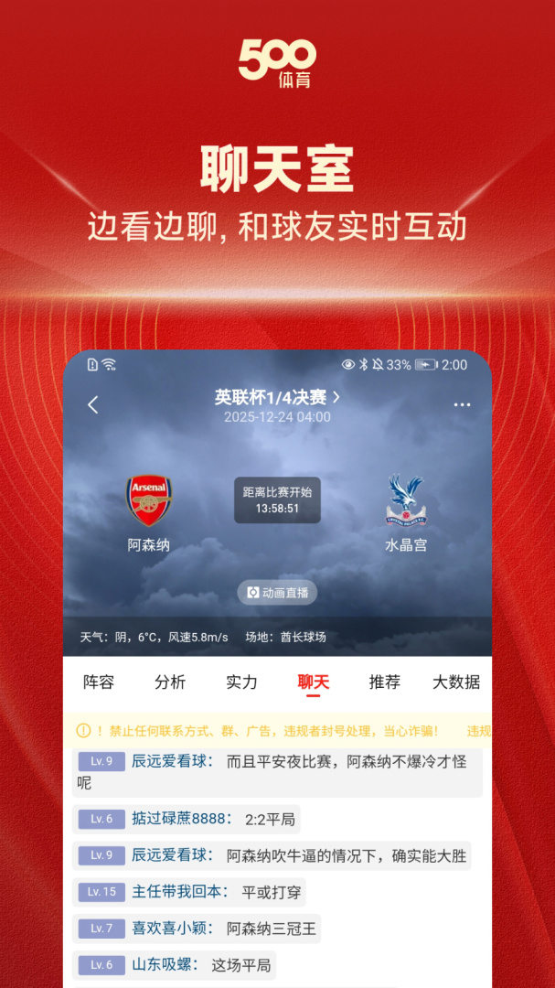 500有料app的界面设计简洁明了,操作便捷流畅,同时提供了丰富的社交互动功能,用户可以在直播间内与其他球迷互动交流,分享观赛心得,增强了观赛的乐趣与互动性。