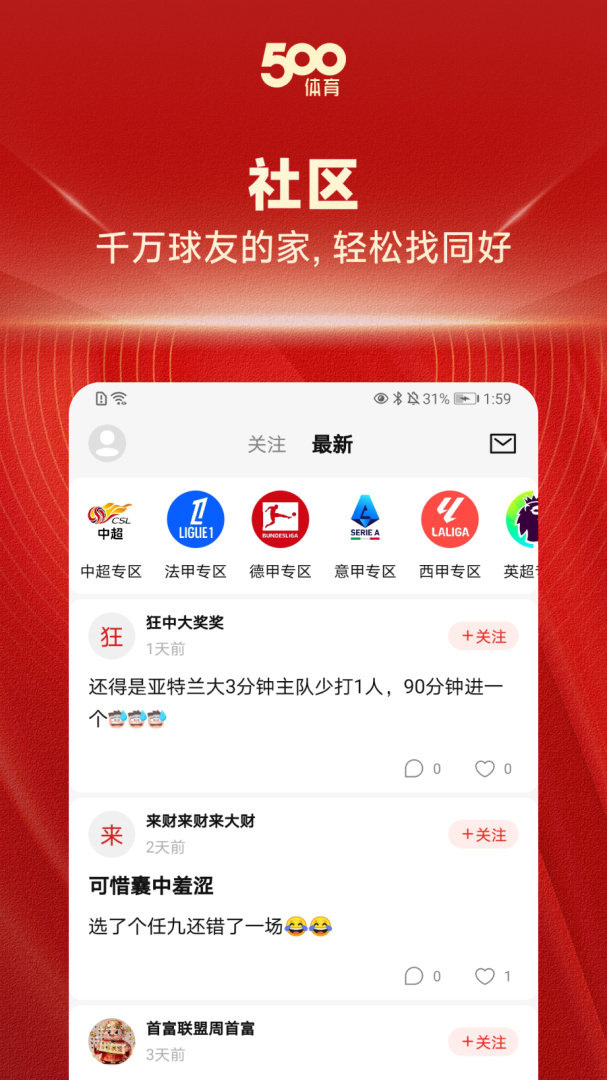 4、互动社区:老球迷,新社区,有阵营,有福利,一起嗨起来