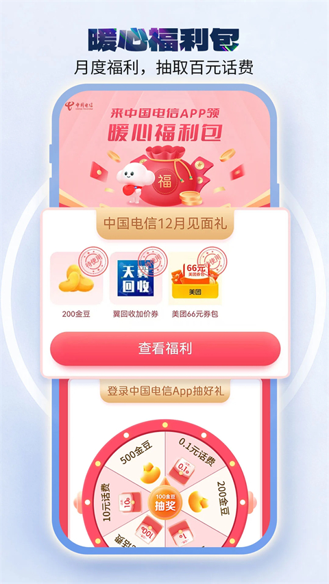 中国电信掌上营业厅作为中国电信官方统一线上服务入口,让用户足不出户即可畅享全业务办理便捷。话费充值、流量套餐办理、宽带查询等核心功能一键操作,告别线下排队烦恼,账单明细与用量信息实时清晰呈现。福利体系丰富实用,缴费享9.95折基础优惠,叠加随机立减5元惊喜。新用户注册即领50元大礼包,含话费券、流量包及金豆奖励。每日签到积累的金豆可兑换话费、视频会员等礼品,有效期3个月需及时使用。地域专属福利覆盖广泛:江西、湖南用户每月领1GB流量,新疆、宁夏享3GB专属流量,福建、广东等多省福利持续更新。生日当月更有定制礼包暖心送达,从日常缴费到权益兑换,全方位满足通信生活需求,是电信用户必备的服务神器。