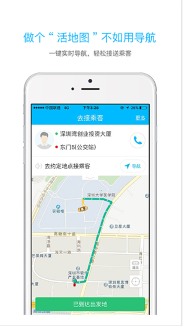 3、接单畅通:清晰播报用户上下车地点,抢单后马上致电,沟通无障碍