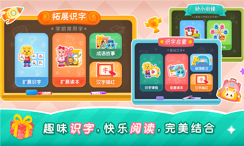 每天都有全新的学习故事和识字游戏,让孩子的学习热情持续高涨。