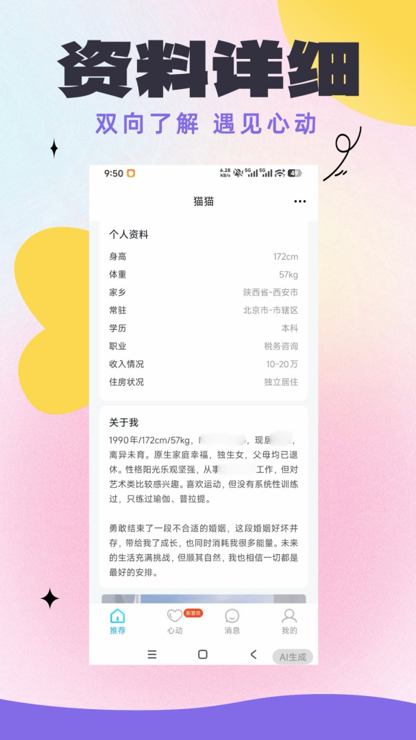 5、会根据用户填写的信息和兴趣爱好来帮助用户匹配到与其相似的人