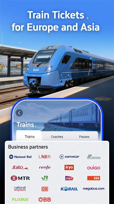 轻松预订中国国内、韩国、英国火车票。