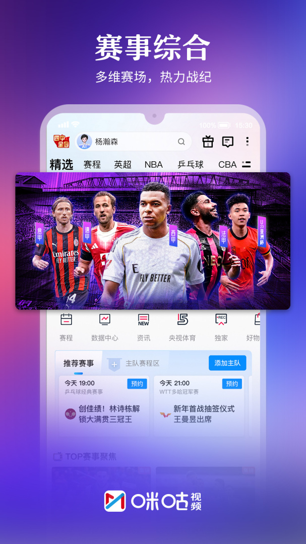 英超、西甲、德甲、意甲、法甲、NBA、WTT、UFC、《剥茧》《马背摇篮》《长安二十四计》等众多精彩内容等你来看,海量热门赛事直播、精彩影视剧集锁定咪咕视频