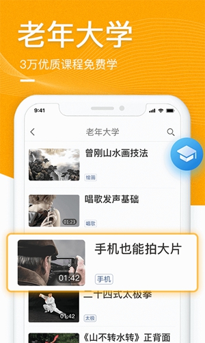 【老年大学】免费的老年网校,在线报名、在线学习。唱歌、广场舞、书法、太极、中老年模特、摄影、厨艺…让中老年生活更充实。