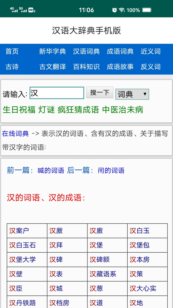 汉语大辞典app是一款功能强大的手机应用,专为学习和查询汉字、词语及成语而设计。用户可以轻松通过输入进行检索,迅速获取有关汉语的丰富知识,它包含了超过20973个汉字、384925条词语以及5万条成语。诗词和对联的内容也十分丰富,用户还可以找到灯谜和各类文化游戏的解答。不仅适合学生在学习中使用,还能帮助广大用户提高语言表达能力。界面友好,操作便捷,是汉语爱好者和学习者的理想选择,可以随时随地拉近与汉语言文化的距离。