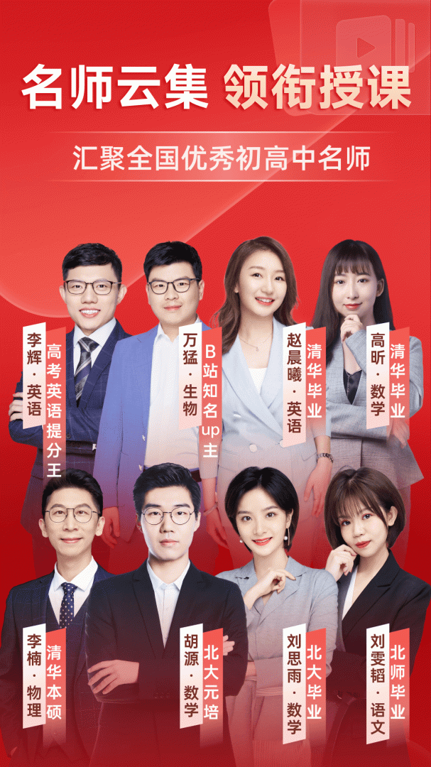 汇聚原新东方功勋教师赵建昆、单词王曲根、写作一姐王菲、高考英语专家钟平、清华附中名师陆艳华等一线名师,打造“有道牛师团”,用经验与实力助你高效提分。