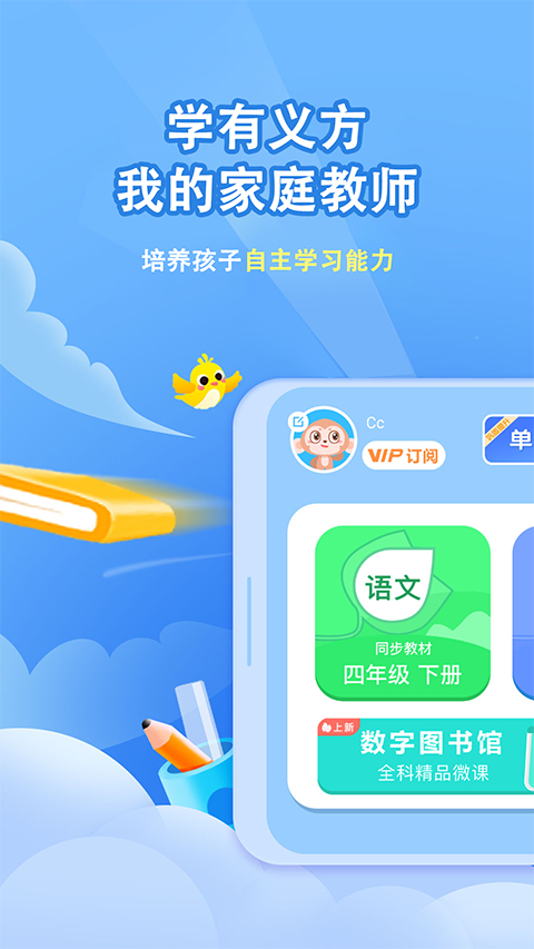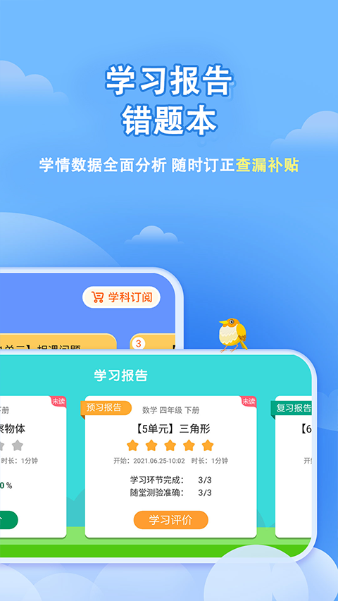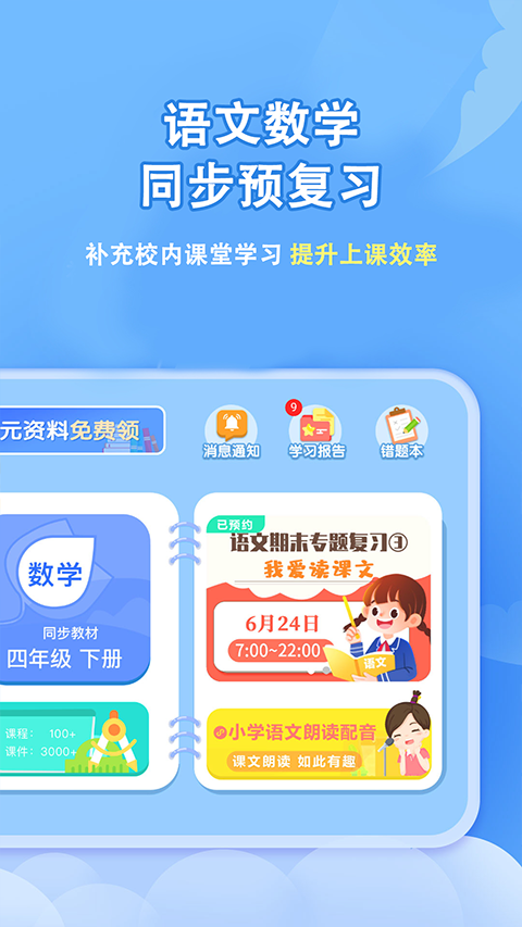 语文/数学教材同步,覆盖预习、复习全流程,通过智能评测动态调整学习方案。