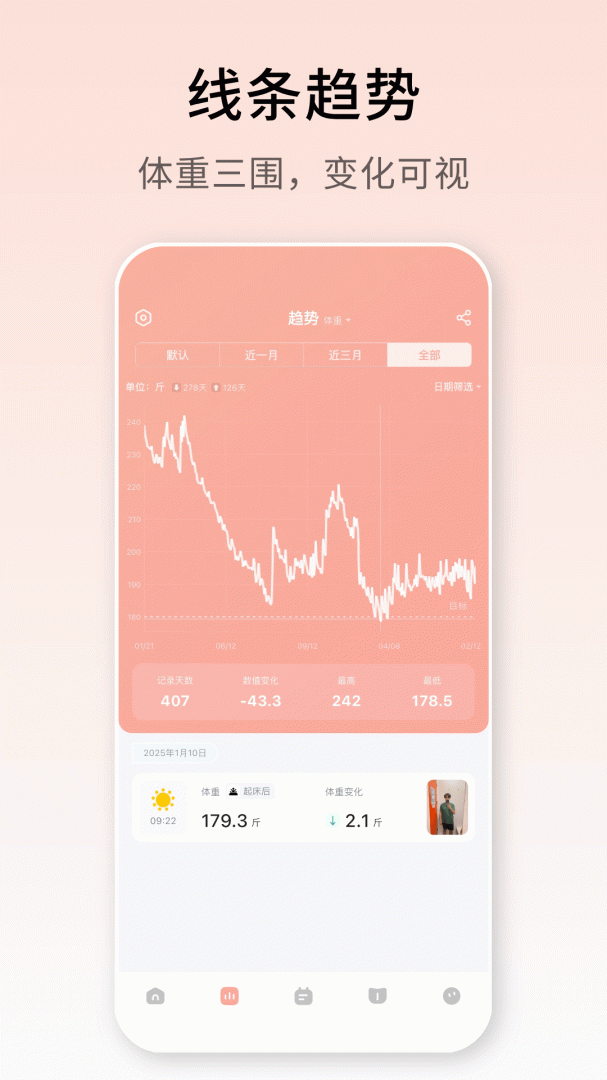 2、体重趋势,一目了然;