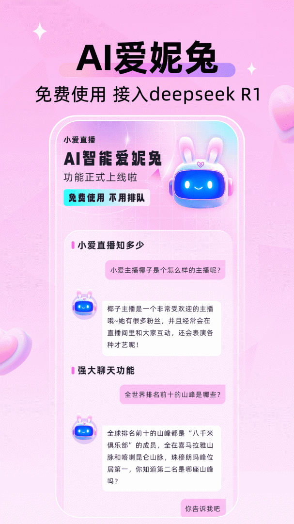 小爱直播间是一款极具魅力的直播平台,致力于为用户带来丰富多彩的互动体验。你可以在这里看到各类主播,从帅气小伙到美丽小姐姐,每位主播都散发着独特的魅力。还有明星及热门网红定期上线,让直播内容更加精彩纷呈。用户不仅可以欣赏直播,还能参与聊天,与主播进行实时互动,享受亲密无间的交流。如果你也想尝试成为主播,大胆展现自己的才艺与魅力,这里是实现梦想的理想之地。快来加入我们,一起探索直播的无限乐趣吧!