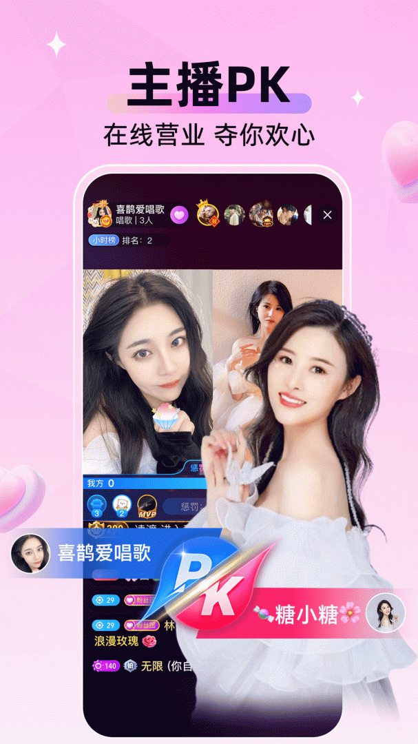 界面设计聚焦核心交互,三秒即可进入心动直播间。趣味游戏与惊喜任务系统增强用户黏性,在低操作门槛中实现娱乐社交的无缝融合。