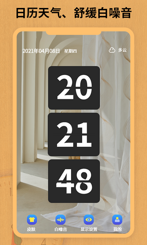 全屏翻页动画,经典动态翻页时钟、简约表盘时钟、极简数字时钟等多种样式任意挑选。