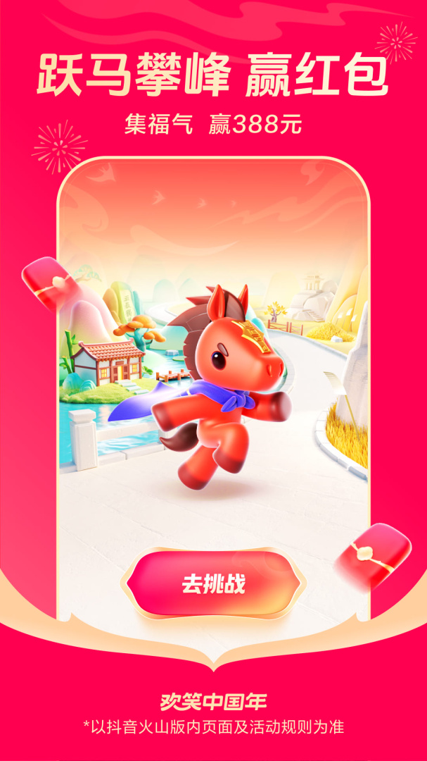 2026抖音火山版欢笑中国年活动开始啦!大量红包等你来赢!