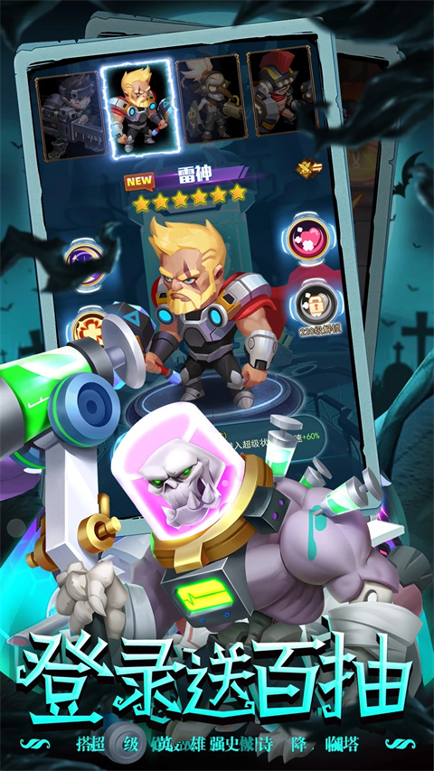 -Q版游戏画面,独特英雄卡牌系统,让传统的塔防游戏焕发出奇异魅力;