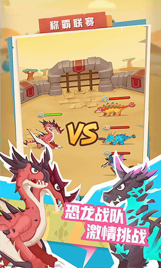 3、刺激斗兽竞技:组建最强恐龙战队,挑战PVE/PVP玩法,在斗兽场热血对战,争夺史前霸主称号!