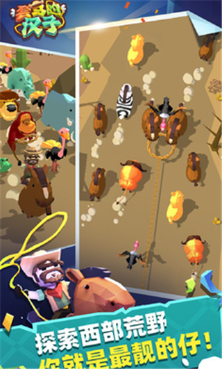 套马的汉子是一款模拟经营养成与闯关相结合的休闲游戏,玩家将会运用手中的绳索来荒原之上捕捉各种动物,驯服它们,你就能够将它们收纳进入到自己的动物园之中,这里充满着各种各样呆萌的小宠物们,快来饲养它们吧,不断扩建自己的场地,让这片土地能够容纳下更多的生物!
