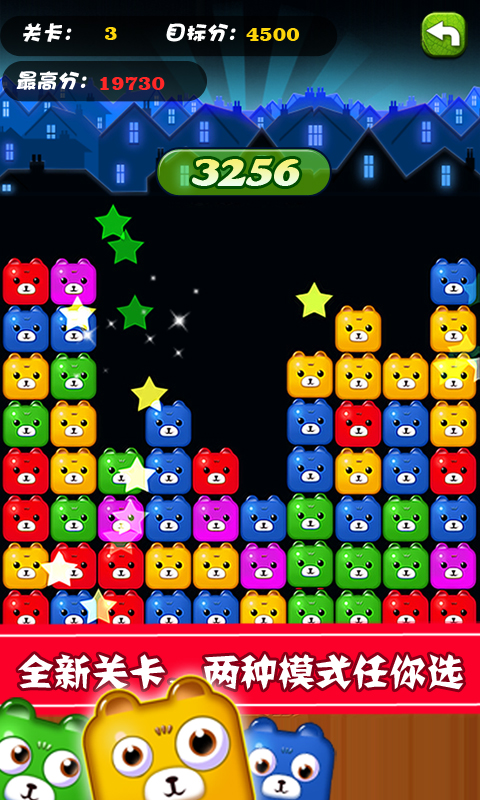 游戏中拥有五种色彩绚丽、造型各异的可爱小熊,搭配萌趣横生的背景音乐和音效,营造出一个充满欢乐与温馨的游戏世界,让每位玩家都能被深深吸引。