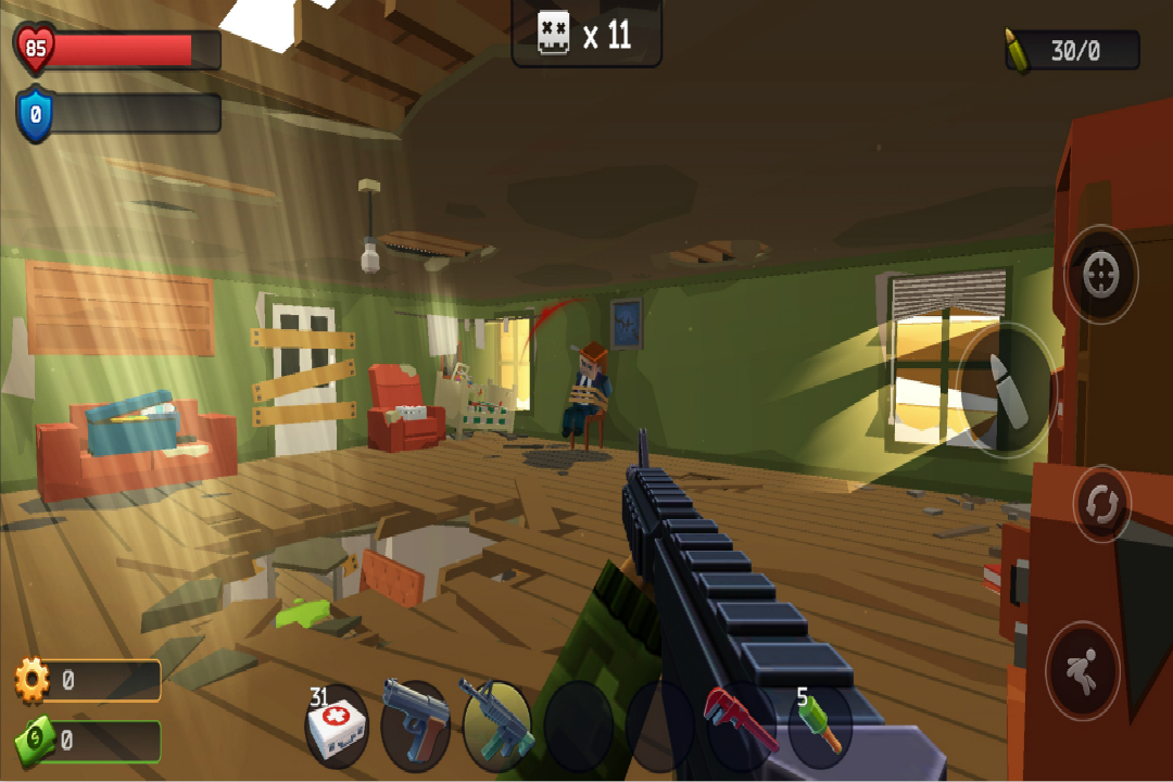 极限挑战疯狂特工官方版是一款刺激的第一人称像素风射击游戏。在这个封闭的空间中,玩家需要抵御不断涌来的僵尸潮。你可以选择各种武器,灵活运用房间中的陷阱和屏障进行反击。随着挑战的深入,成功消灭敌人将带来丰富的资源,你可以用这些资源购买更强大的武器,强化你的武器库。你也可以建立一个秘密基地,以便在这个末日世界里生存下来。游戏提供多样化的武器,包括刀、手枪、步枪等,供玩家根据需求自由搭配。每个关卡都设计得别具匠心,等待着玩家们去挑战。