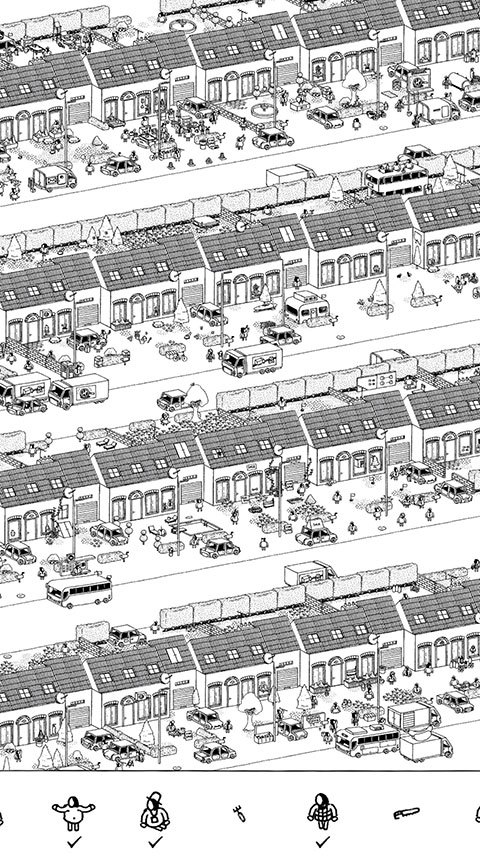 6、《隐藏的家伙》游戏为各位伙伴带来了诸多精彩的关卡,每一次的挑战都会是不同感受;游戏画风总的来讲是极其简洁的,注意 ,你得要从一个个复杂的场景关卡中来准确的找到目标物,准备好了吗?冒险现在开始了