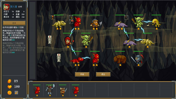 战斗采用类自走棋玩法,怪物具有不同的属性、技能、职业等