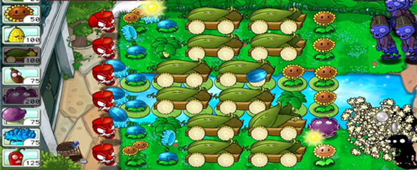 1、逐渐增加的关卡战斗难度,需要利用好太阳精华,来制造植物