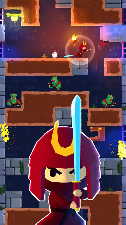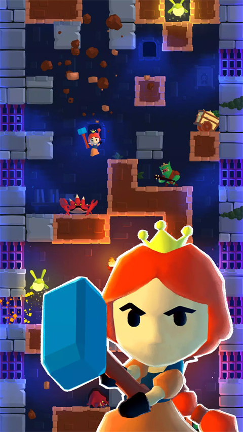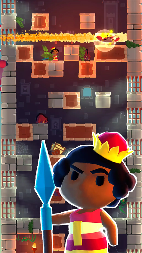 以“公主向下脱出高塔”为目标,操作简单,带有一定随机性的关卡,可收集的多种公主形象,多样的敌人和道具使得游戏具有一定的乐趣。