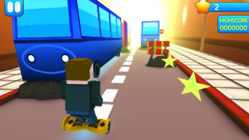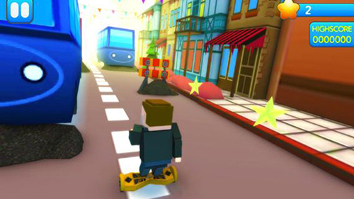 玩家在一块滑板上不断的穿梭在马路上,收集星星让你能够买道具,升级你的武器,要记得礼让车辆,不然很有可能会变成一滩番茄酱