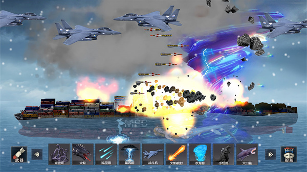 2、简约的2D图形,独特的破坏玩法,将各种船沉入海底